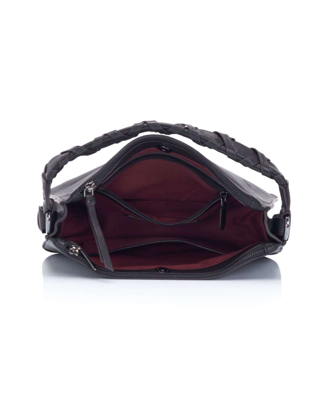 Tancament amb cremallera. Nansa bandolera extraïble. Nansa per a espatlla. Diversos compartiments i butxaques interiors.