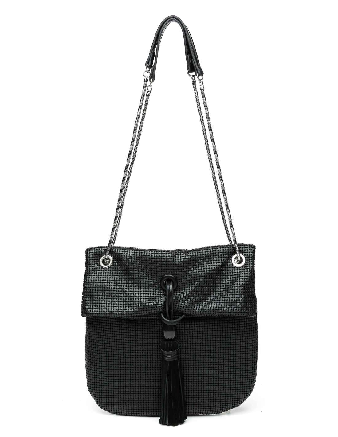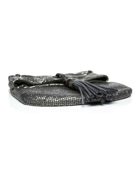 Nansa metàl·lica corredissa (es pot utilitzar com a nansa bandolera o nansa d'espatlla). Butxaca interior amb cremallera.