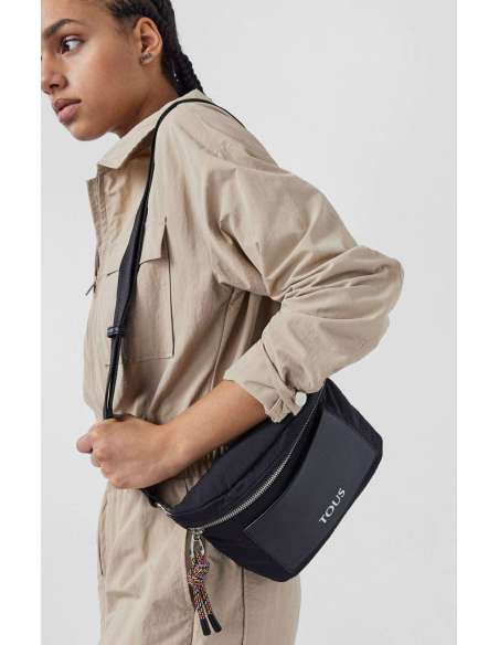 El tancament és amb cremallera. Té una butxaca oberta a l'exterior i una altra a l'interior. Incorpora una nansa de webbing ajustable
