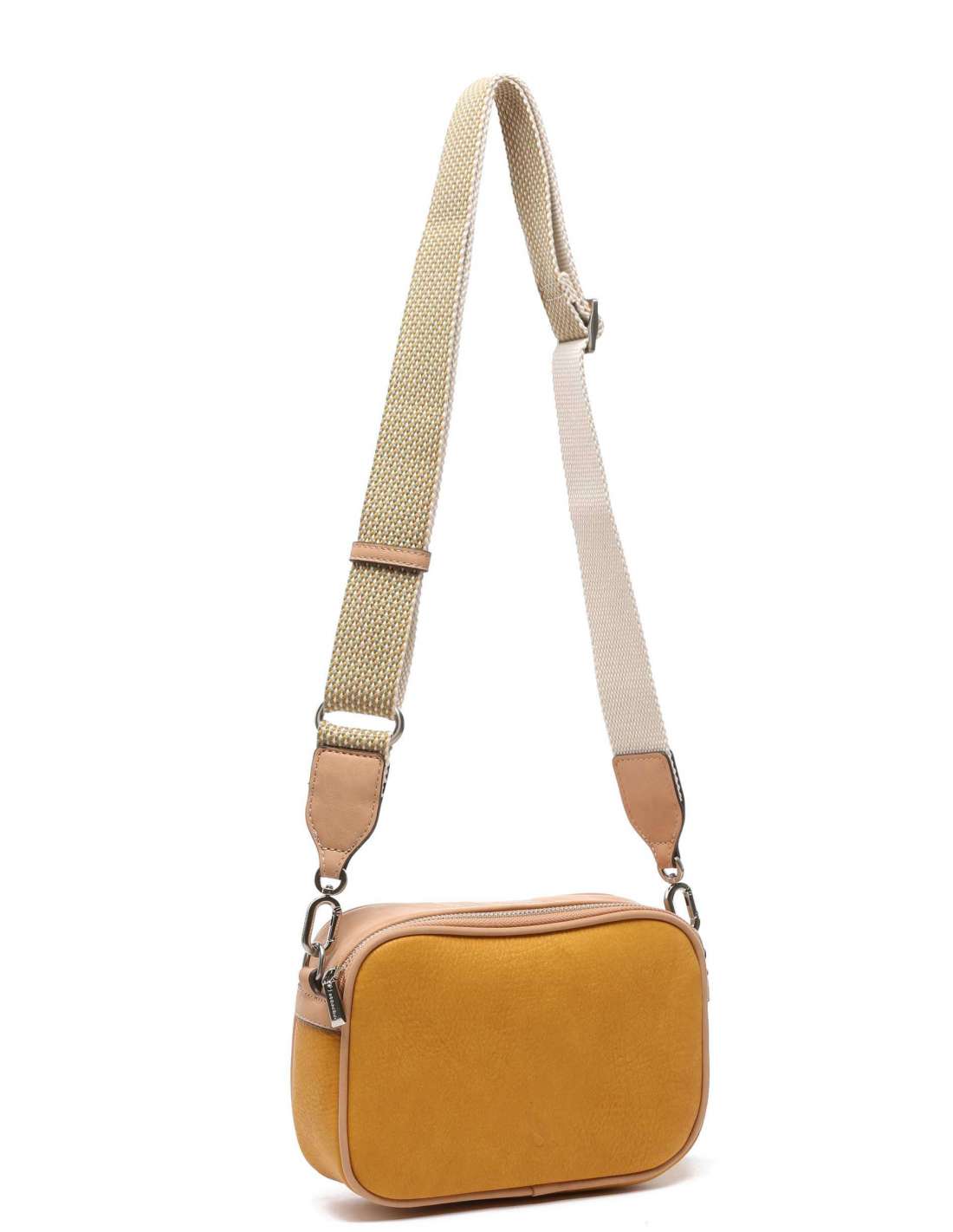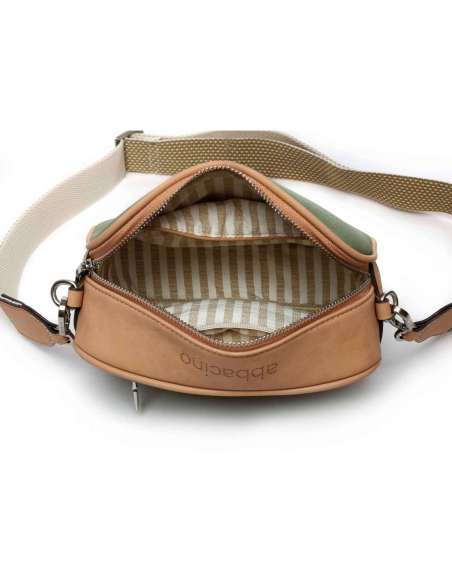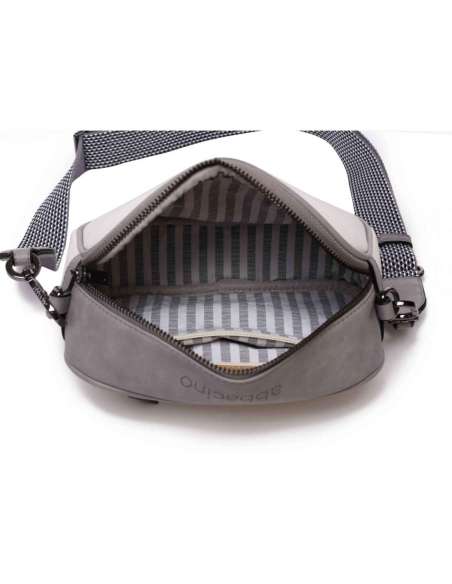 Tancament amb cremallera. Nansa bandolera regulable. Diversos compartiments interiors.