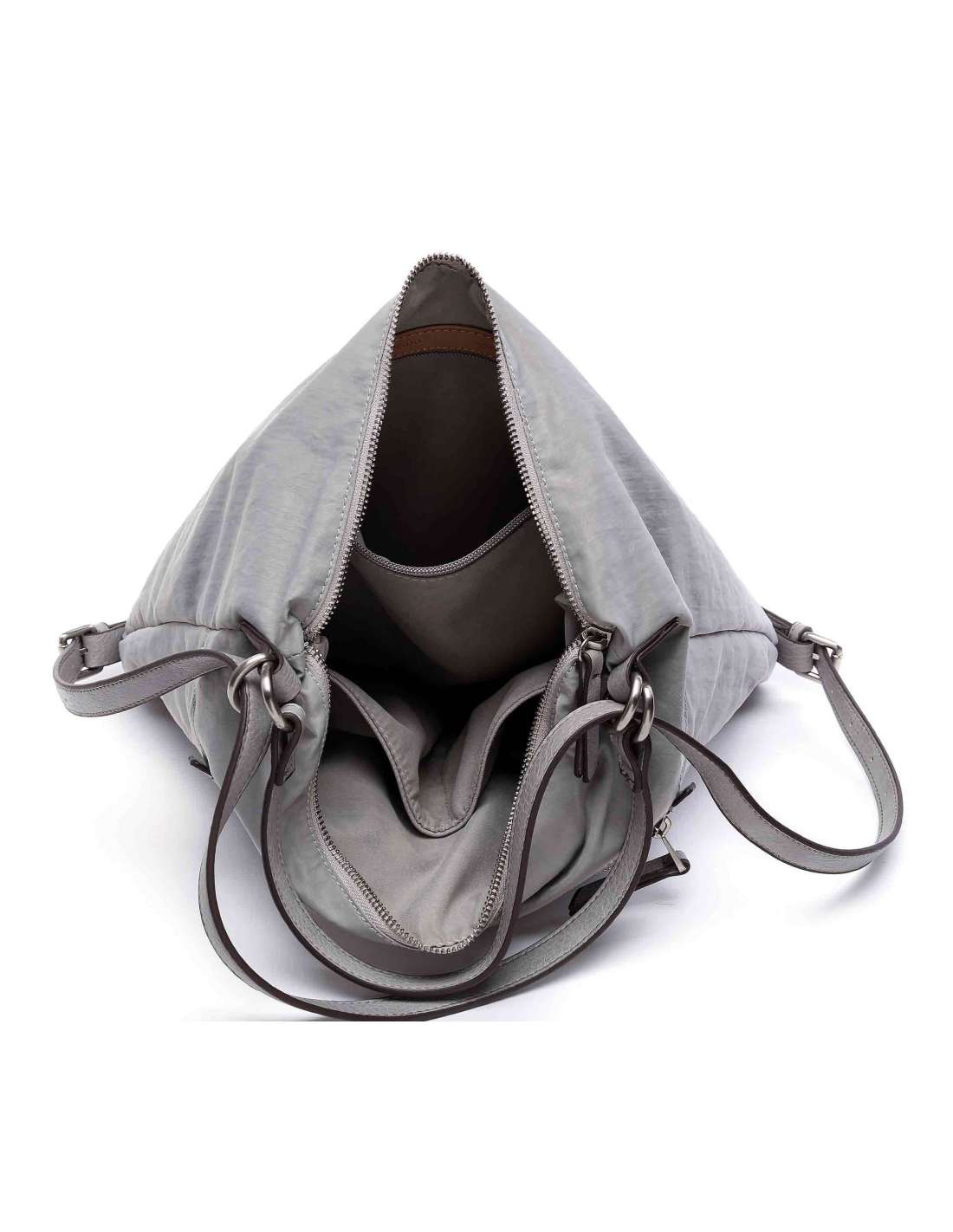 Tancament amb cremallera. Nansa bandolera regulable. Diversos compartiments interiors.