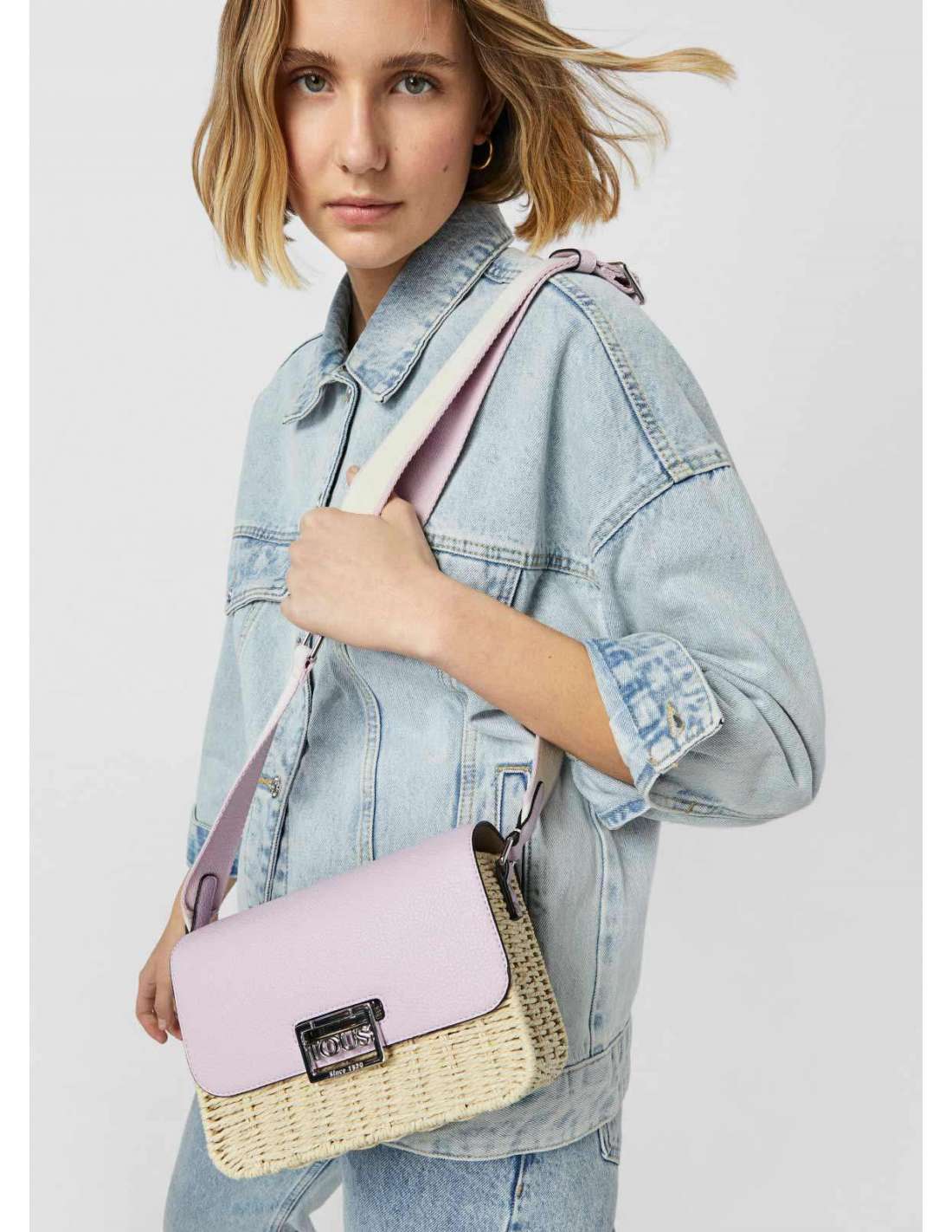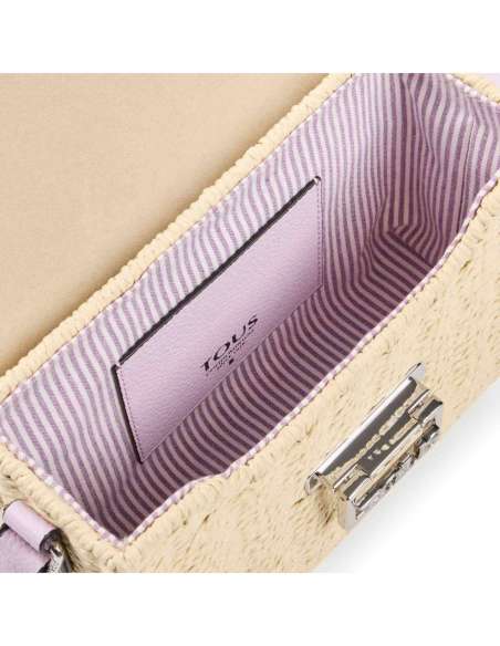 El tancament és amb solapa i placa giratòria de metall. Compta amb una nansa de webbing ajustable i una butxaca interior oberta per a targetes.