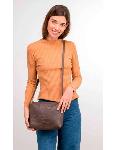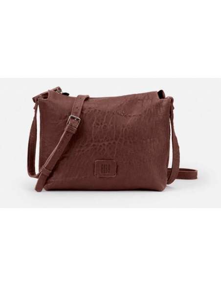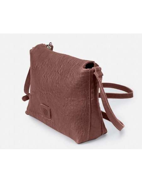 Bossa bandolera de pell ovina, de curtició vegetal i local. Pell rentada per destacar el gra natural. Forma rectangular. Bandolera ajustable i tancament amb cremallera.