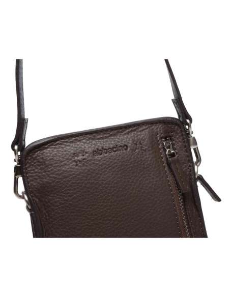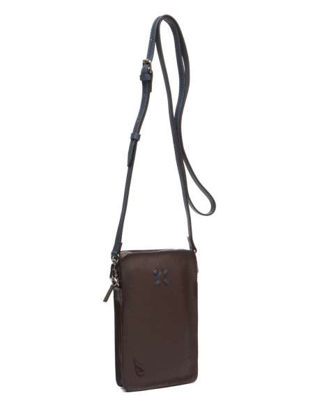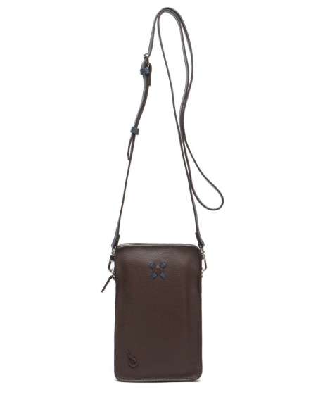 Elaborat amb pell de boví de manera artesanal. Ranures interiors per guardar les targetes i un compartiment principal, ideal per portar el mòbil, un moneder o les claus. Folre interior. Tancament superior amb cremallera. Còmoda nansa creuada que es pot regular i és de posar i treure.