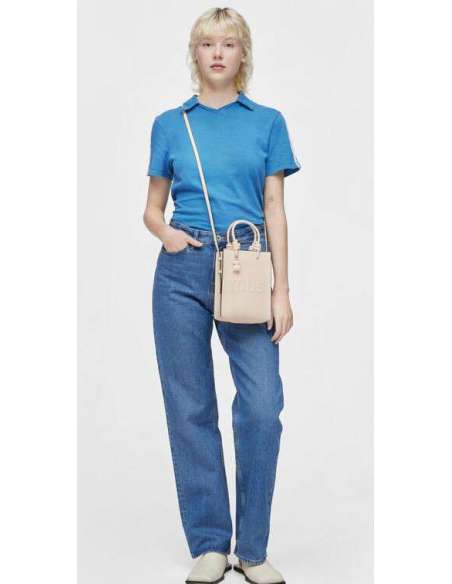 Mini bossa Pop TOUS La Rue New de pell sintètica. Tancament amb botó magnètic. Nanses fixes de mà i nansa bandolera ajustable i extraïble. Incorpora un bonic detall d'ós penjoll.