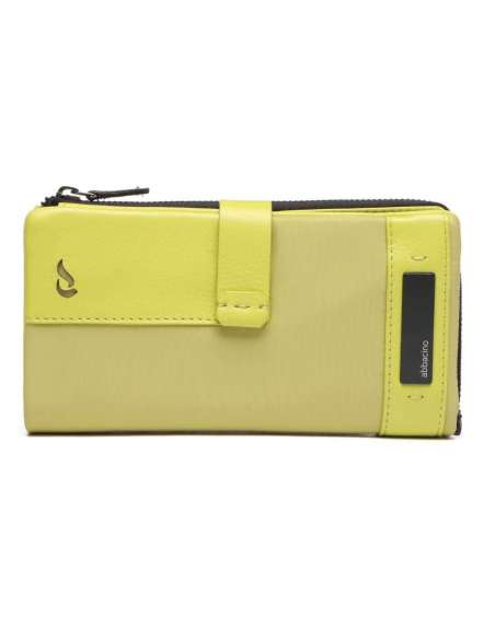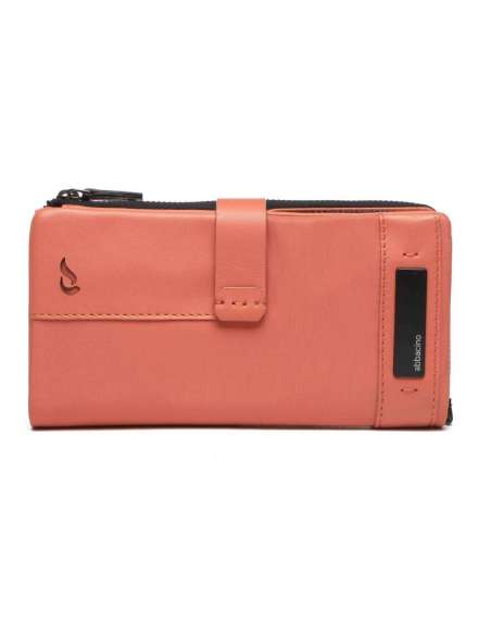 Elaborada amb pell. Al seu interior compta amb diverses ranures per a targetes (una especial per a DNI) i un compartiment per a bitllets. Moneder extraïble. A l´exterior, disposa d´un ampli moneder amb cremallera. A la part frontal, ressalta un pegat de teixit negre amb el logotip Abbacino. Grandària gran.
