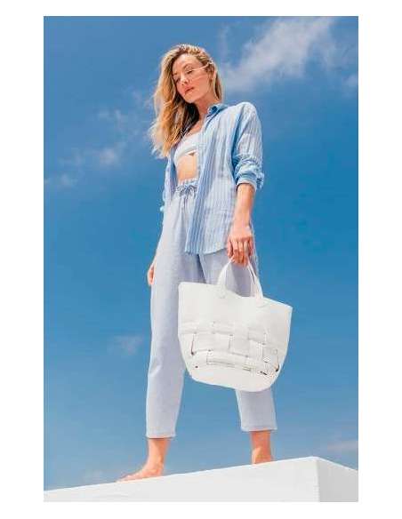 Combina diferents materials i textures. Folre interior. Inclou un bonic organitzador que podràs fer servir conjuntament amb la bossa o de forma individual. Combina la seva doble nansa de mà amb una pràctica bandolera que es pot regular i és de posar i treure. A la part frontal, porta subtilment gravat el logotip Abbacino.