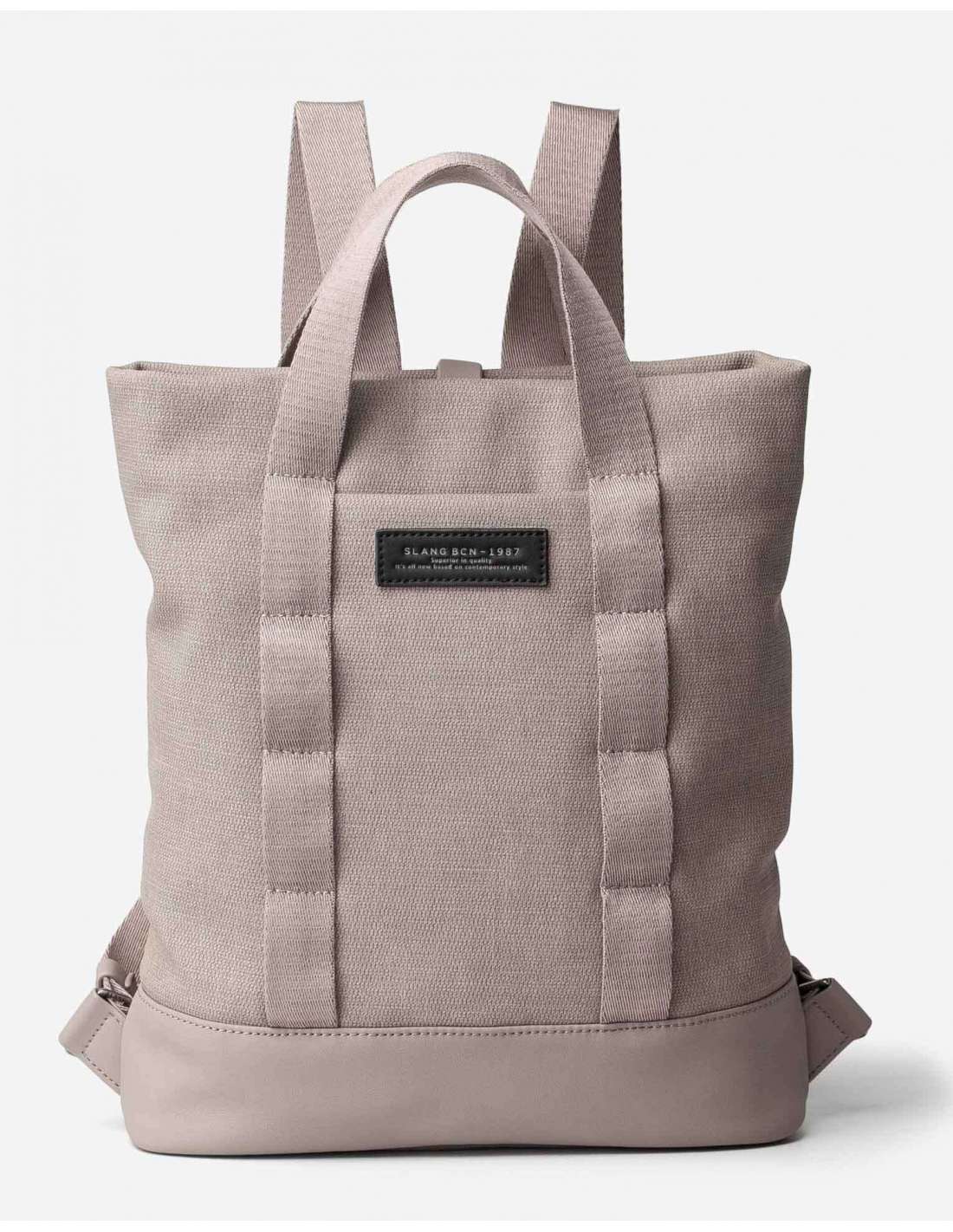 Motxilla amb material reciclat efecte canves. Butxaca a la part del davant i del darrere amb tancament magnètic. Doble nansa de mà i corretges regulables. Folre interior de cotó reciclat amb múltiples butxaques. Tancament amb cremallera metàl·lica.