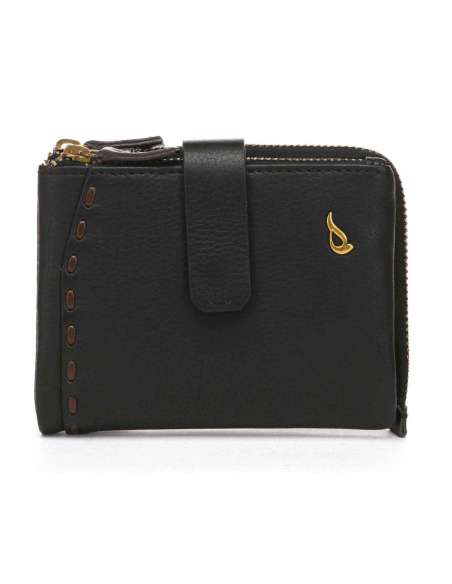 Elaborada amb pell Premium. Al seu interior compta amb diverses ranures per a les targetes i un compartiment per a bitllets. Targeter extraïble. Compartiment exterior amb cremallera que actua com a moneder. Al seu frontal, apreciem repunts que contrasten amb el color del complement i un aplic metàl·lic amb el logo de la marca. Mida petita.