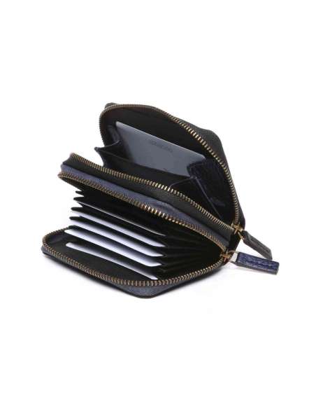 Elaborada amb pell. Al seu interior disposa de ranures per a targetes i un espai per a monedes. En una cantonada del frontal podem apreciar subtilment gravat el logotip Abbacino. Tancament amb cremallera. Mida petita.