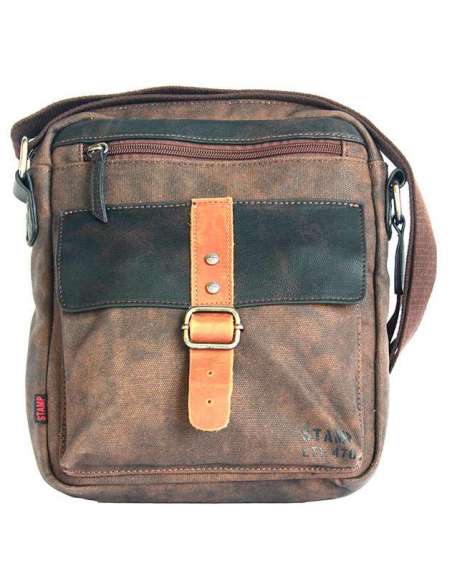 Bossa bandolera en lona encerada impermeable i detalls de pell boví. A la part davantera disposa de dues butxaques, una amb solapa i tancament magnètic i una altra amb cremallera, mentre a la part superior una altra cremallera dóna accés al compartiment principal. Disposa de dues butxaques més a la part posterior. Estil urbà. Bandolera de cotó regulable i cremalleres a to. Ferratges metàl·lics en zamak. Folre de cotó.