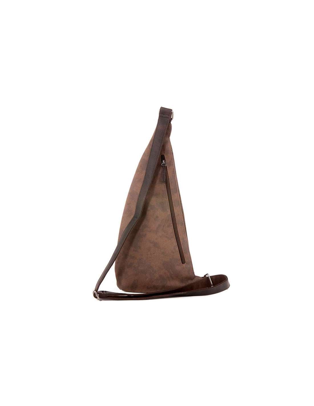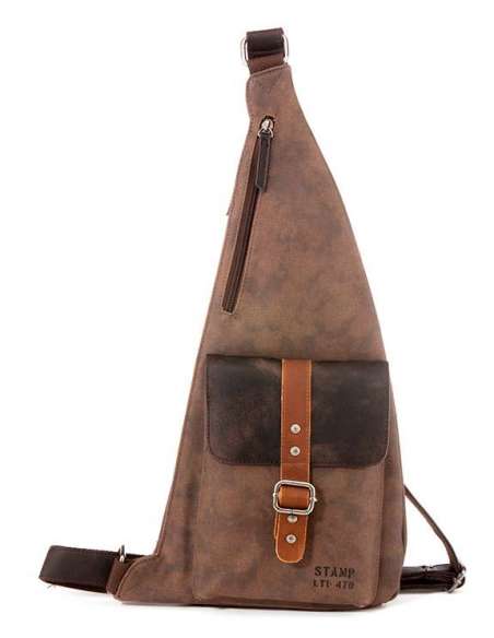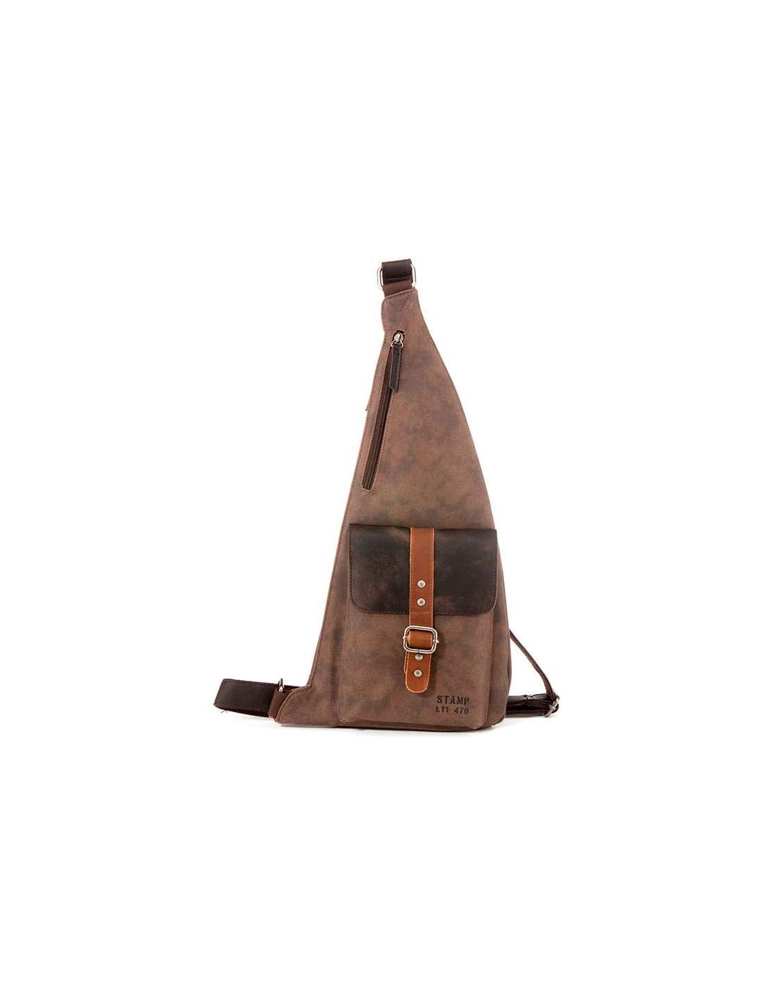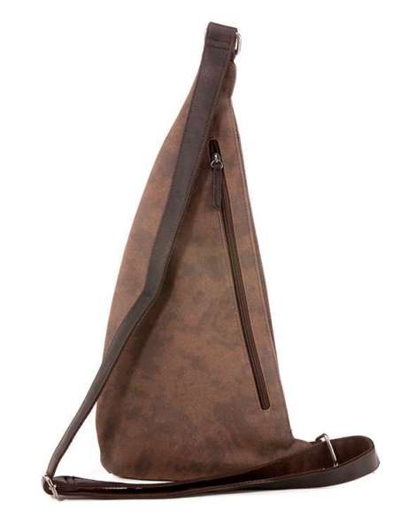 Motxilla creuada en lona encerada impermeable i detalls de pell boví. A la part davantera disposa de dues butxaques, una amb solapa i tancament magnètic i una altra amb cremallera, mentre que al lateral hi ha una altra cremallera que dóna accés al compartiment principal. A la part posterior hi ha una altra butxaca. Estil urbà. Bandolera de cotó i cremalleres a to. Bandolera regulable. Ferratges en to zamak.