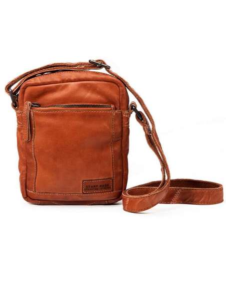 Bossa bandolera fabricada amb pell rentada de primera qualitat. A la part davantera hi ha una butxaca amb cremallera, mentre que a la part superior una altra cremallera dóna accés al compartiment principal. Disposa d'una butxaca més a la part posterior. Estil urbà. Bandolera de pell regulable i cremalleres a to. Ferratges metàl·lics en zamak. Folre de cotó.