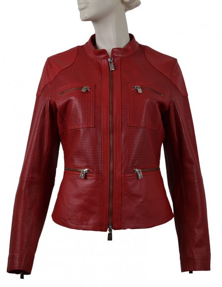 Caçadora de cuiro amb coll mao. La pell és molt suau i lleugera.