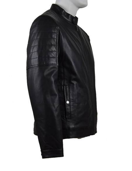 Caçadora de pell molt suau amb repunts a l'espatlla, màniga, laterals i esquena.