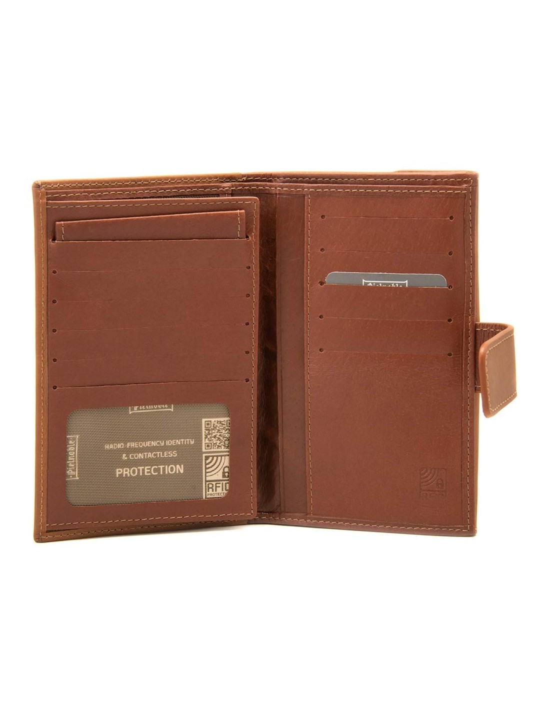Portamonedes exterior amb tancament de solapa i tres separacions interior, un amb cremallera de 12.5 x 7 cm.