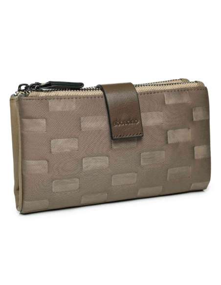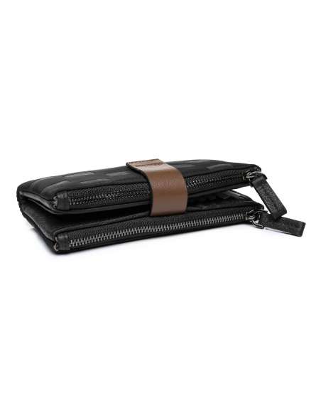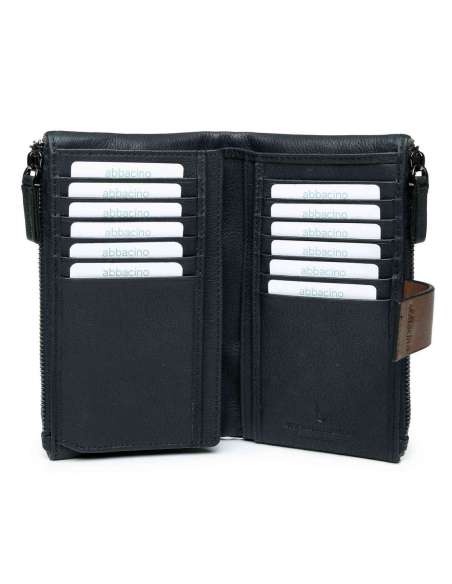 Diversos compartiments interiors per organitzar les targetes i els bitllets. Ampli compartiment amb cremallera que actua com a moneder.