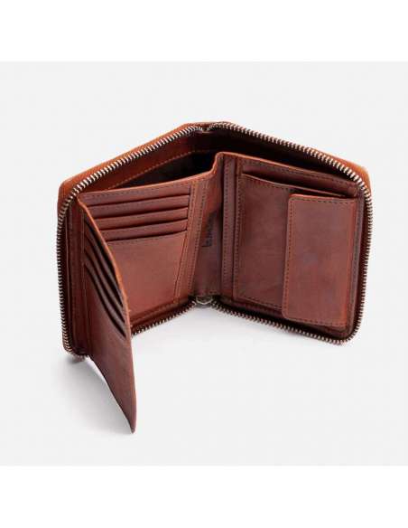 Múltiples departaments per a les targetes i els bitllets. Compartiment transparent per a documents amb foto. Departament per a les monedes.