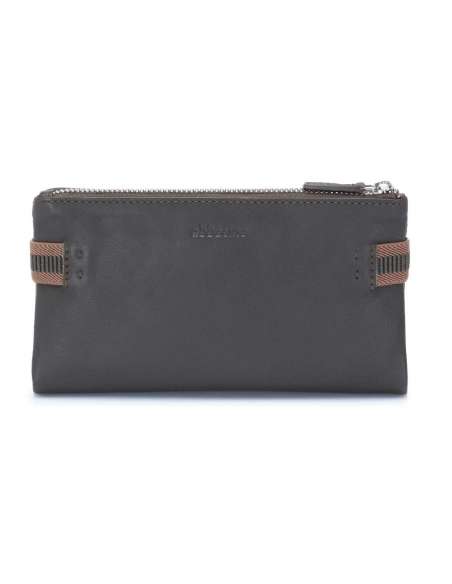 Tancament amb elàstic de seguretat. Compartiment amb cremallera que actua com a moneder. Diverses ranures per a les targetes. Targeter extraïble.