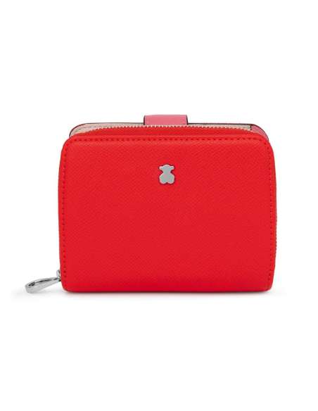 Cartera TOUS de la col·lecció New Dubai de poliuretà amb efecte saffià. Tancament amb botó de pressió i cremallera. Dos compartiments principals: un amb cremallera i un altre per a targetes.