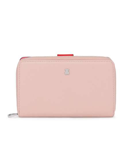 Bitlletera mitjana TOUS de la col·lecció New Dubai de poliuretà amb efecte saffià. Tancament amb botó de pressió i cremallera. Dos compartiments principals: un amb cremallera i un altre per a targetes.
