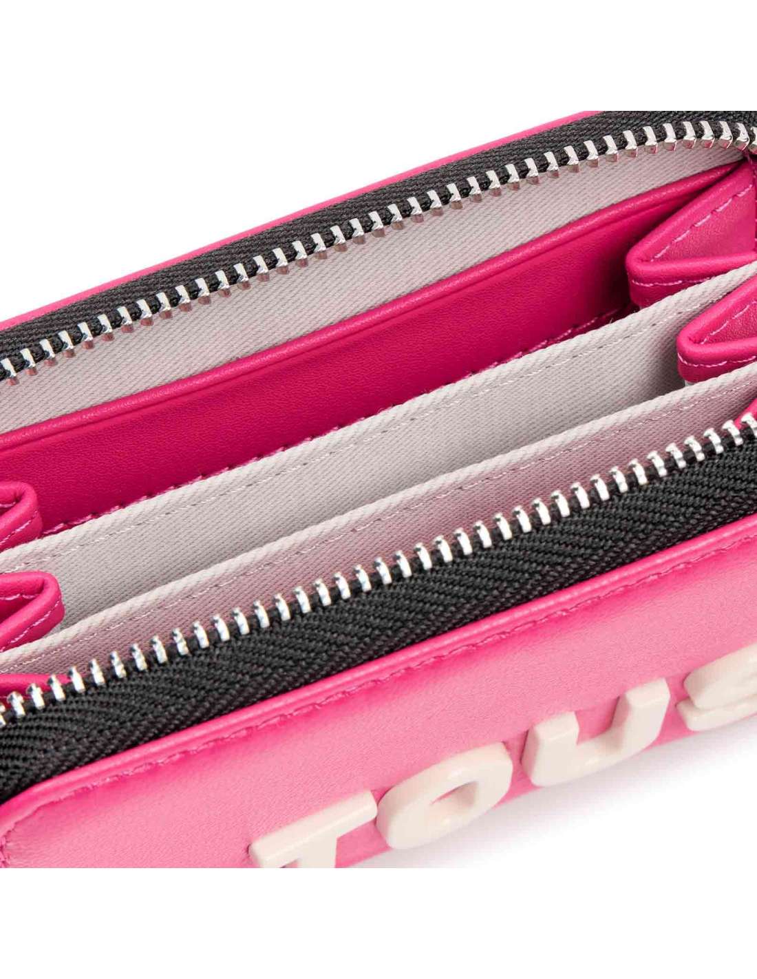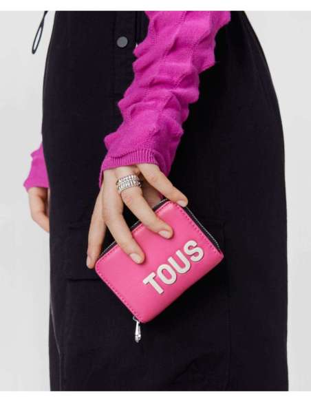 Moneder TOUS Carol de pell sintètica amb tanca de cremallera. A l'interior compta amb tres compartiments oberts per a monedes i dues ranures per a targetes.