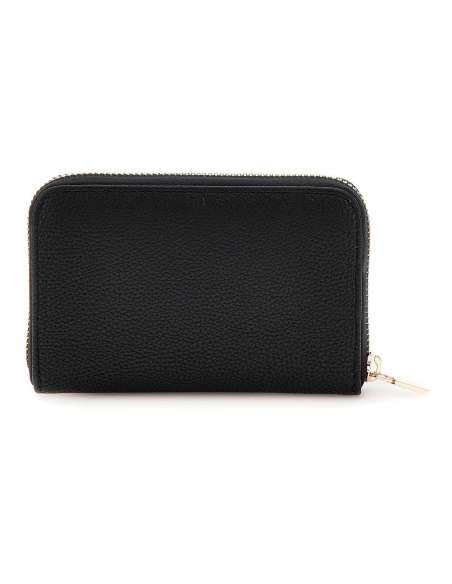 Exterior de pell sintètica. Tancament amb cremallera. Peces metàl·liques color daurat pàl·lid.