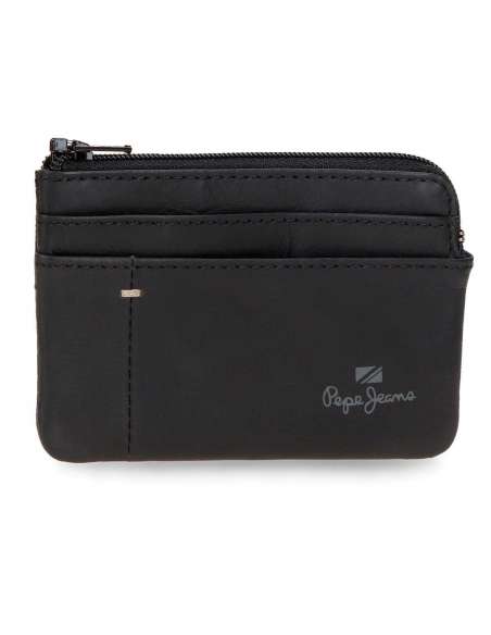 Moneder fabricat a pell. Compte un compartiment amb tancament de cremallera i dues ranures per a targetes. Butxaca de cremallera a la part posterior.