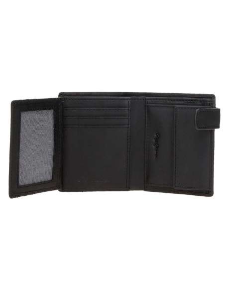 Cartera fabricada a Pell. Compte amb sis ranures per guardar les targetes, un compartiment per al DNI i un espai independent per als bitllets. Incorpora un moneder amb tancament de clic. Sistema especial de protecció per a les targetes RFID que bloqueja els senyals de dispositius d'escaneig no autoritzats per radiofreqüència.
