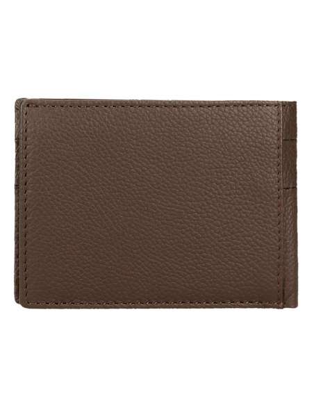 Cartera fabricada a Pell. Compte amb sis ranures per guardar les targetes, un compartiment per al DNI i un espai independent per als bitllets. Incorpora un moneder amb tancament de clic. Sistema especial de protecció per a les targetes RFID que bloqueja els senyals de dispositius d'escaneig no autoritzats per radiofreqüència.