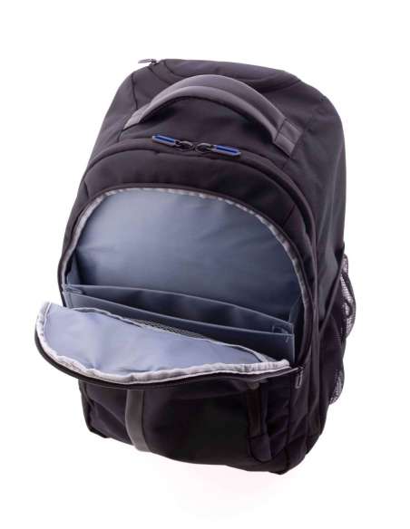 Motxilla trolley de cabina fabricat en material niló. Apte com a equipatge de mà a les companyies aèries de baix cost. Mesures 'cabin ok' maximitzades. Dues rodes. Interior folrat. Butxaques exteriors. Departament interior per a portàtil de 15'. Mecanisme monotub. Lleuger.