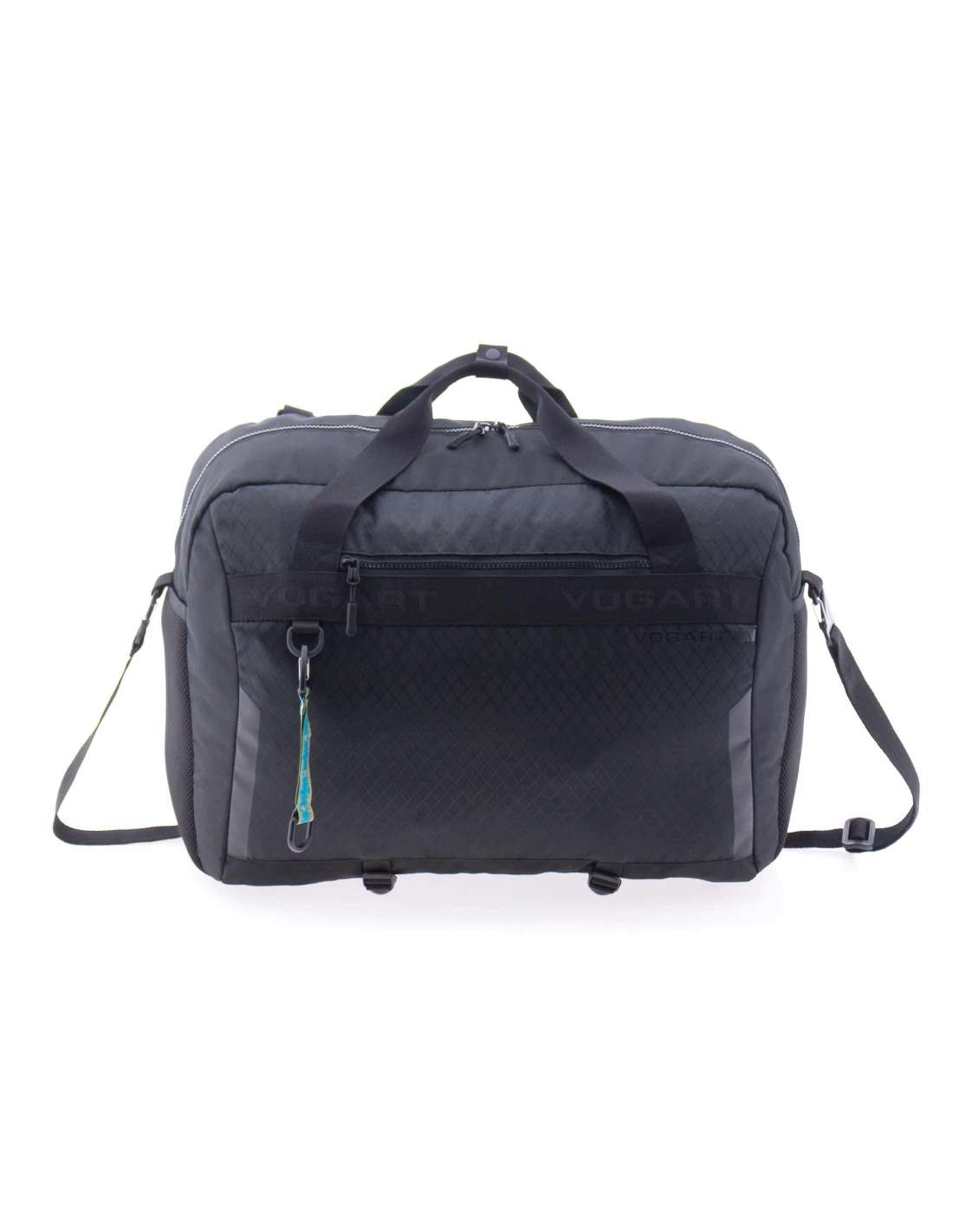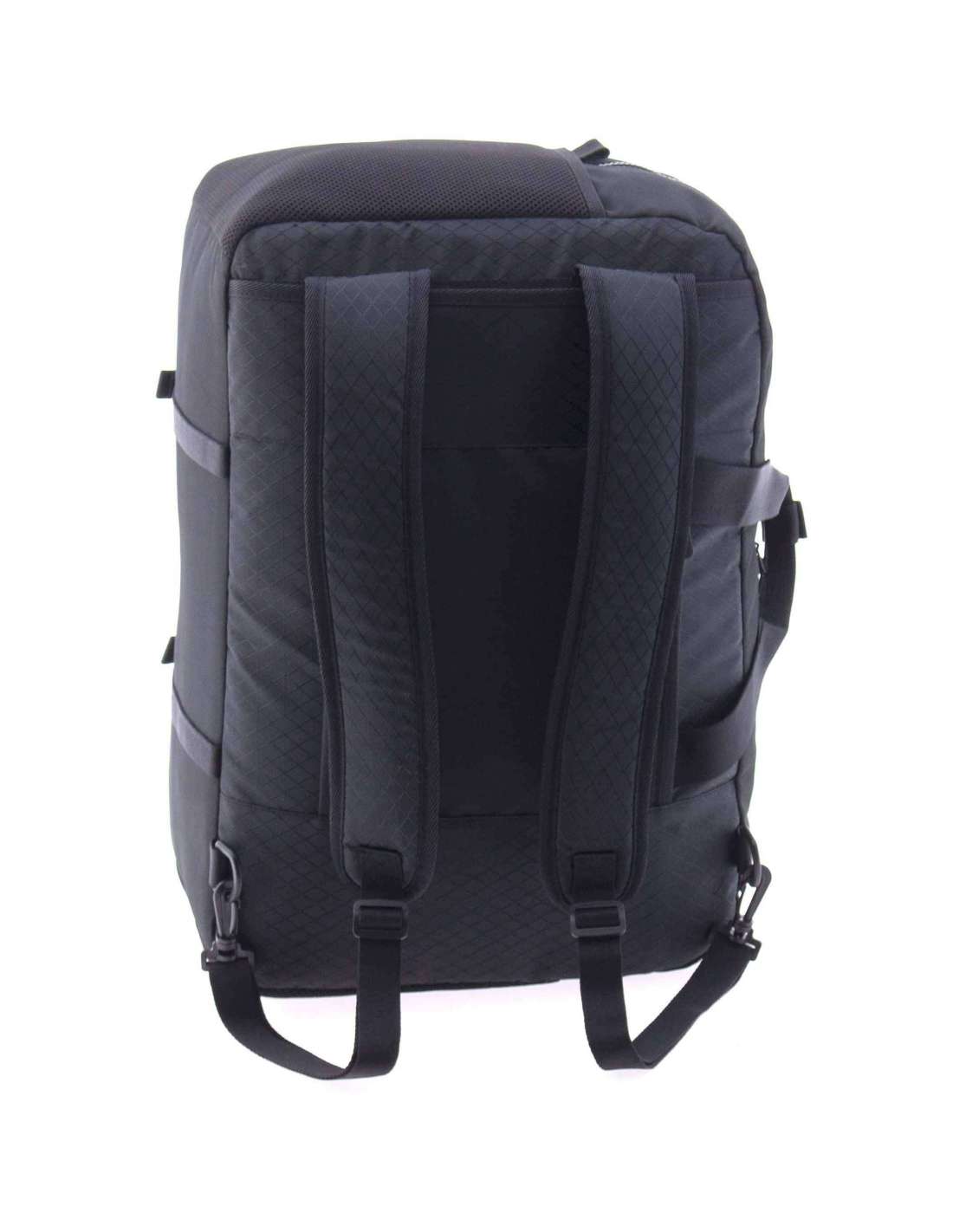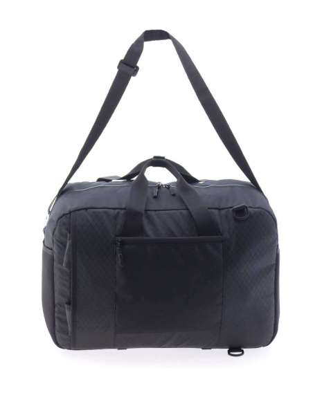 Bossa de viatge, motxilla i bandolera mida gran fabricat en material lleuger Nylon Ripstop. Repel·lent a l'aigua. Mesures aptes com a equipatge de mà. Nansa superior. Bandolera regulable. Interior amb organitzador i butxaques amb cremallera. Butxaca impermeable a l'interior. Butxaca frontal i posterior. Cinta a la part posterior per acoblar al mecanisme de la maleta. Clauer exterior. Compartiment per a portàtil de 17'.