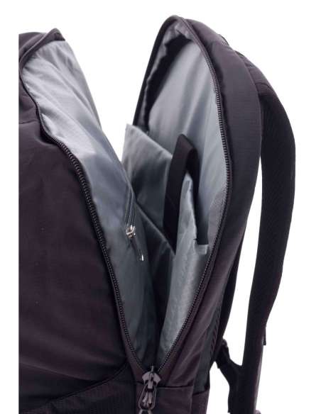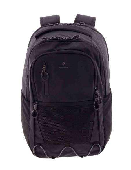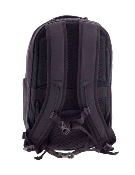 Motxilla fabricada en material lleuger Nylon Ripstop. Tres compartiments centrals amb tancament de cremallera. Butxaques interiors i compartiment per al portàtil de 15 polzades i tauleta. Butxaques frontals, laterals ia la part posterior. Nanses encoixinades. Corretja regulable per a pit. Cinta per acoblar a la maleta.