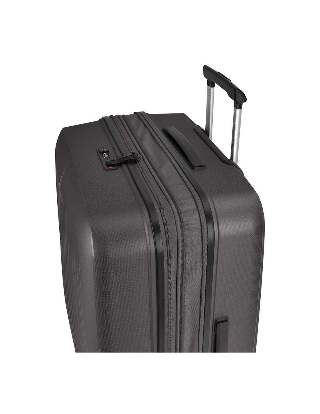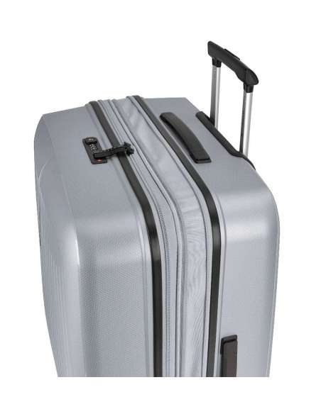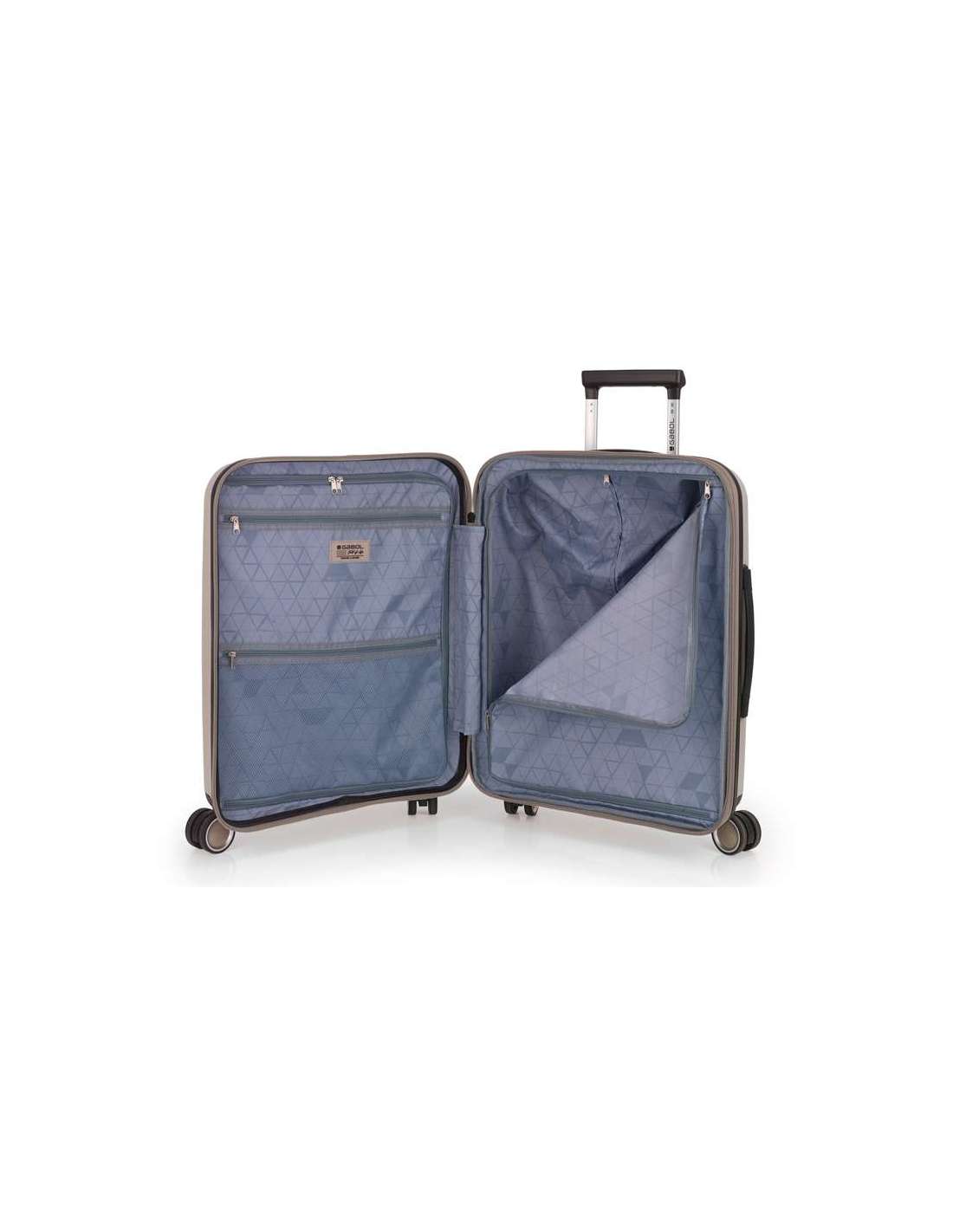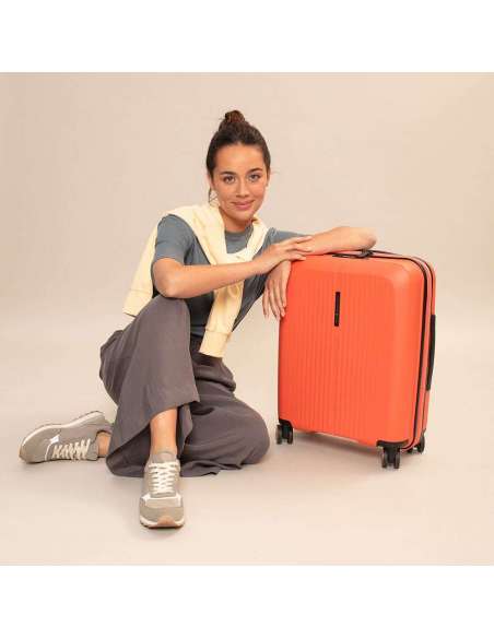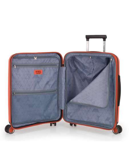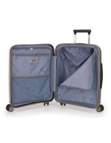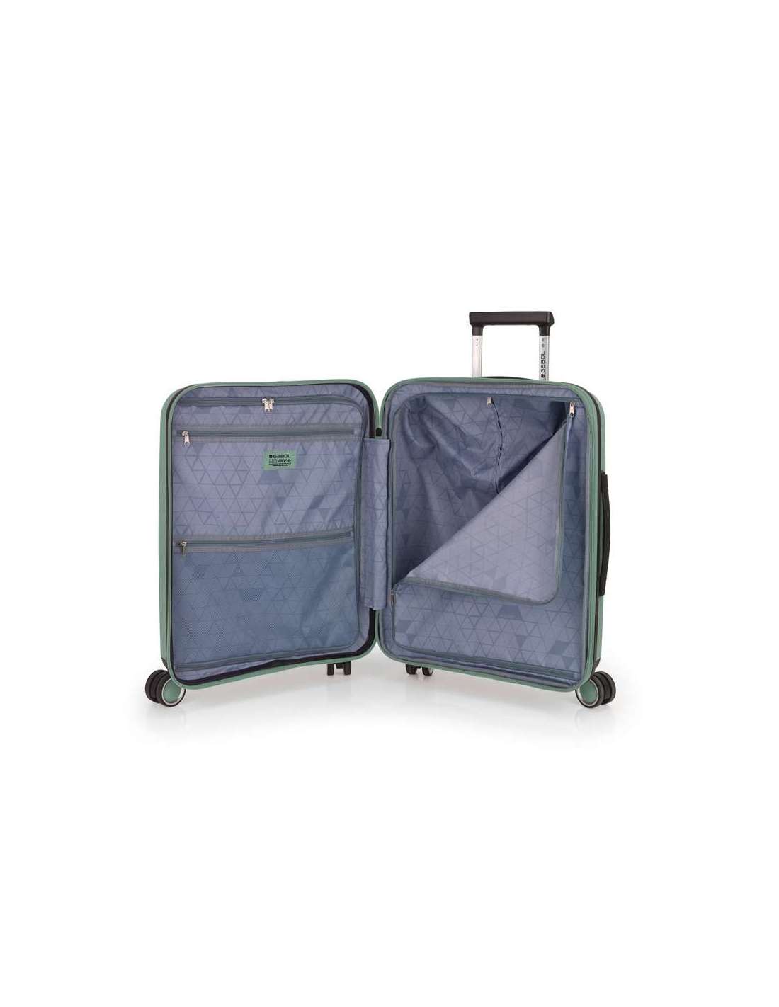 Maleta cabina rígida, expandible i 4 rodes dobles multidirecció. Fabricades amb Polipropilè. El seu interior està compost per un folre de material reciclat, amb doble separador i butxaques. Cremallera de seguretat. Pany TSA. 10 anys de garantia. Mesures sense i amb expandible
