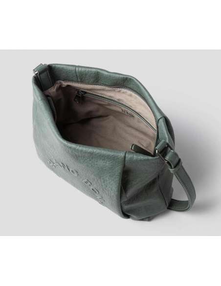 Cierre con cremallera. Asa bandolera regulable. Diversos compartimentos interiores.