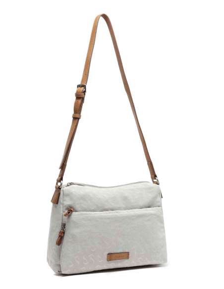 Cierre con cremallera. Asa bandolera regulable. Diversos compartimentos interiores.
