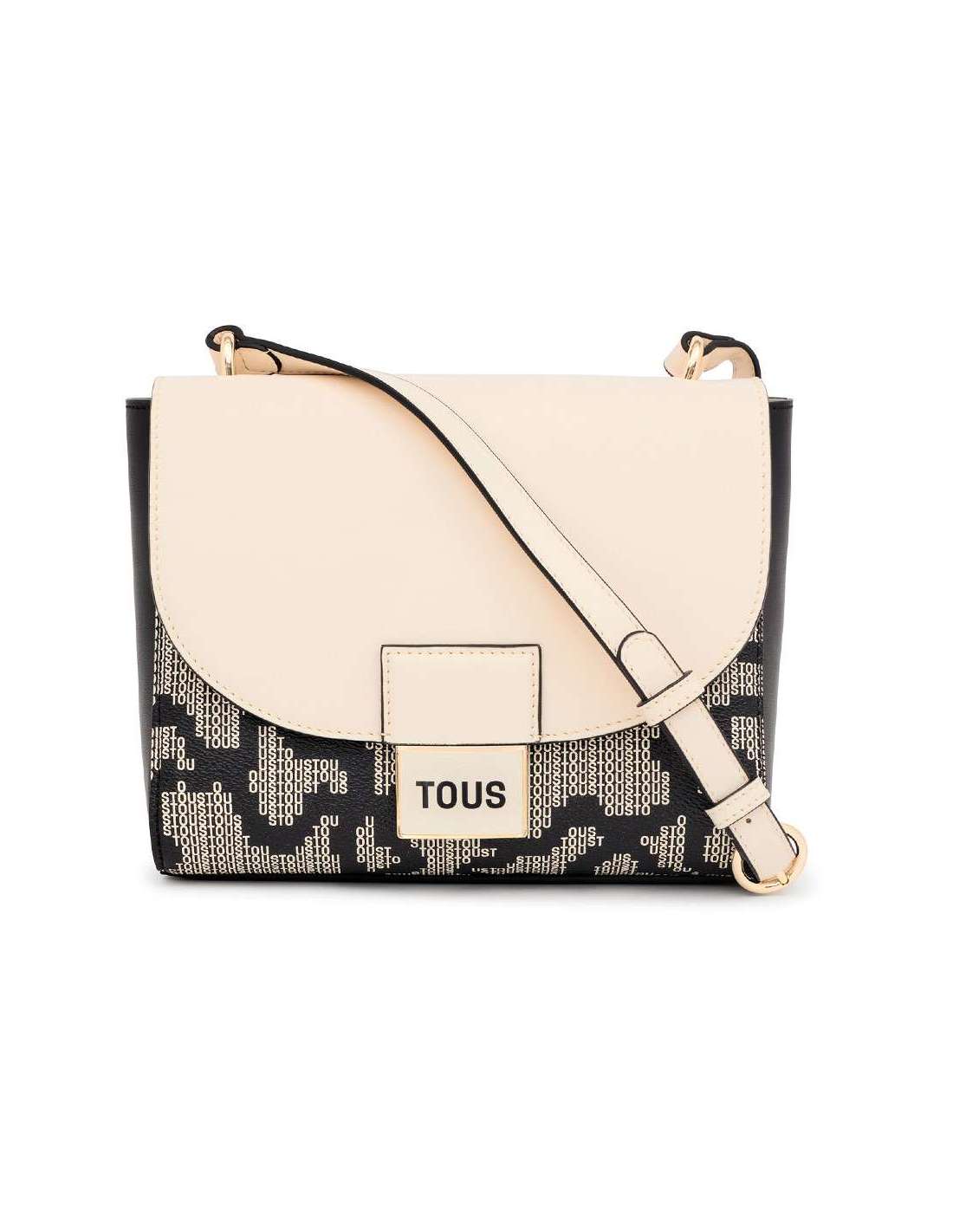 Bolso bandolera pequeño TOUS Kaos Pix de lona con estampado. También incorpora detalles de piel sintética. Cierre de solapa con botón magnético. Bolsillo interior abierto. Asa bandolera ajustable.