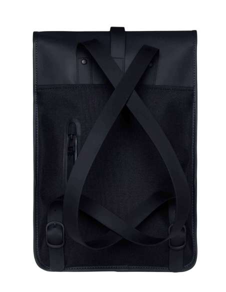 Cierre de mosquetón característico de la marca. Solapa con botones magnéticos automáticos. Un solo compartimento principal. Bolsillo exterior trasero con cremallera. Bolsillo interior con cremallera. Bolsillo plano para el portátil con capacidad para dispositivos de hasta 13" con funda y de hasta 15" sin funda. Correas traseras ajustables. Este producto ha sido diseñado para su uso en condiciones meteorológicas buenas o moderadas