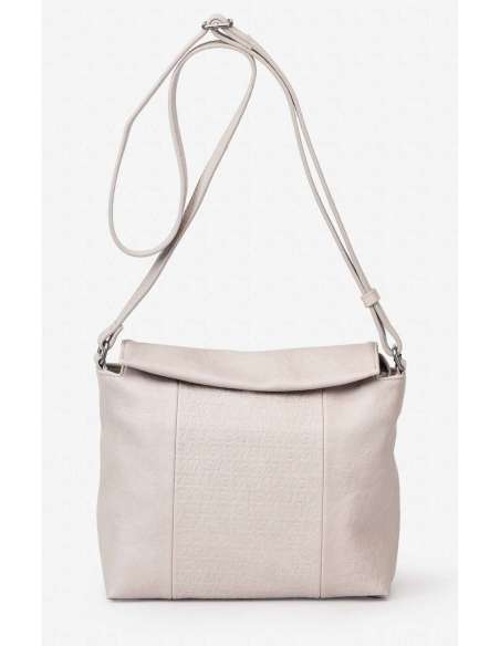 Bolso bandolera efecto piel. Bolsillo trasero con cremallera. Bandolera regulable. Forro interior de algodón con múltiples bolsillos. Cierre con sopala y cremallera.