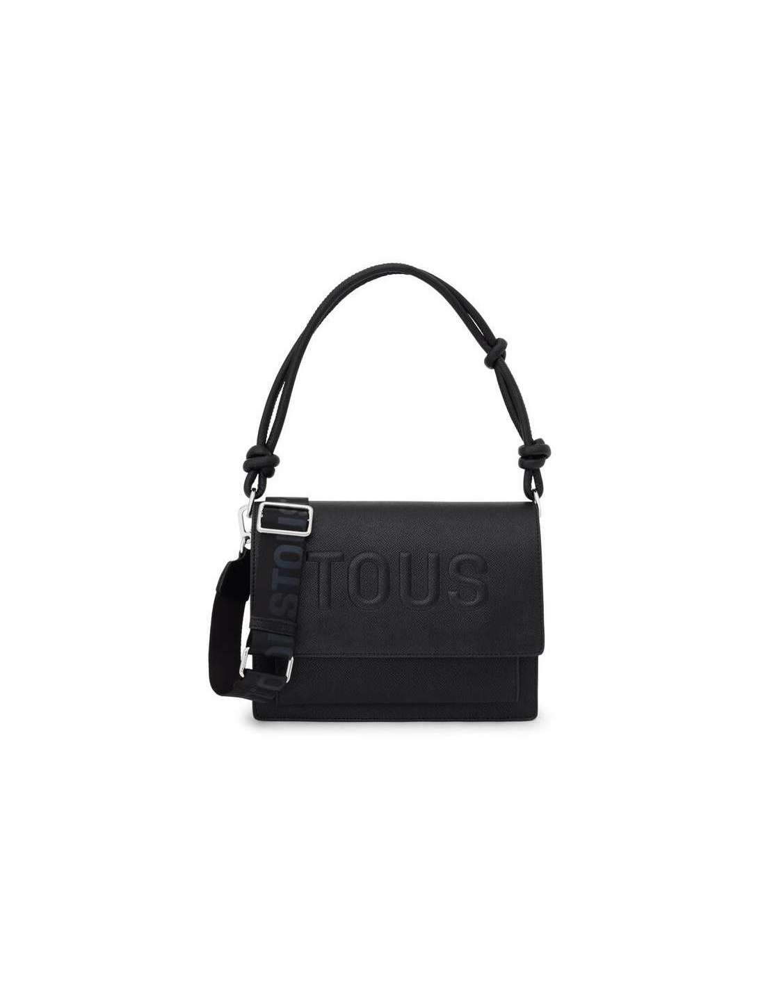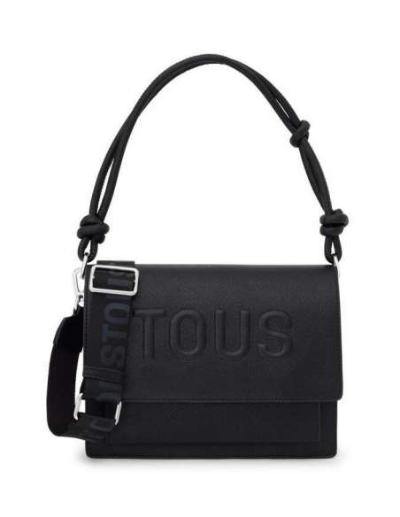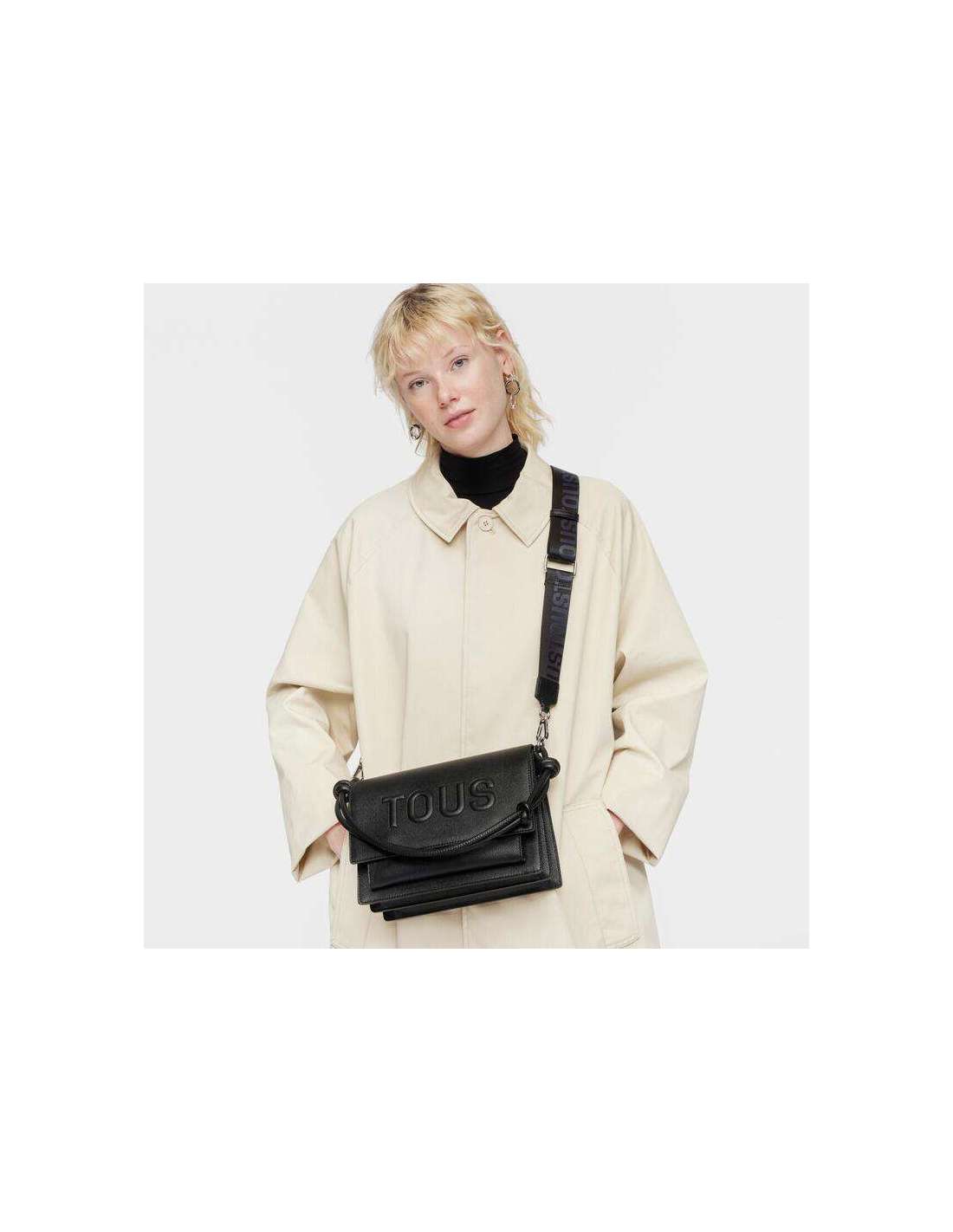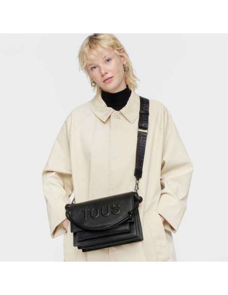 Bolso bandolera mediano Audree TOUS La Rue New de piel sintética. Incorpora una solapa y cierre con dos botones magnéticos. Cuenta con dos compartimentos separados por uno con cremallera y un bolsillo abierto en la parte delantera. Asa de hombro fija y asa bandolera ajustable y extraíble.
