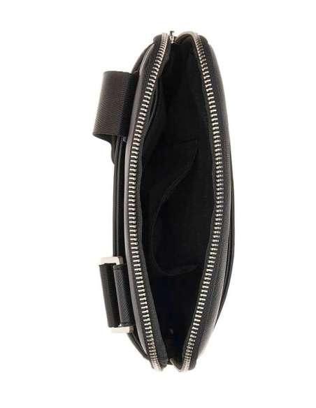 Exterior de piel sintética repelente al agua. Cierre con cremallera. Piezas metálicas de color plateado.