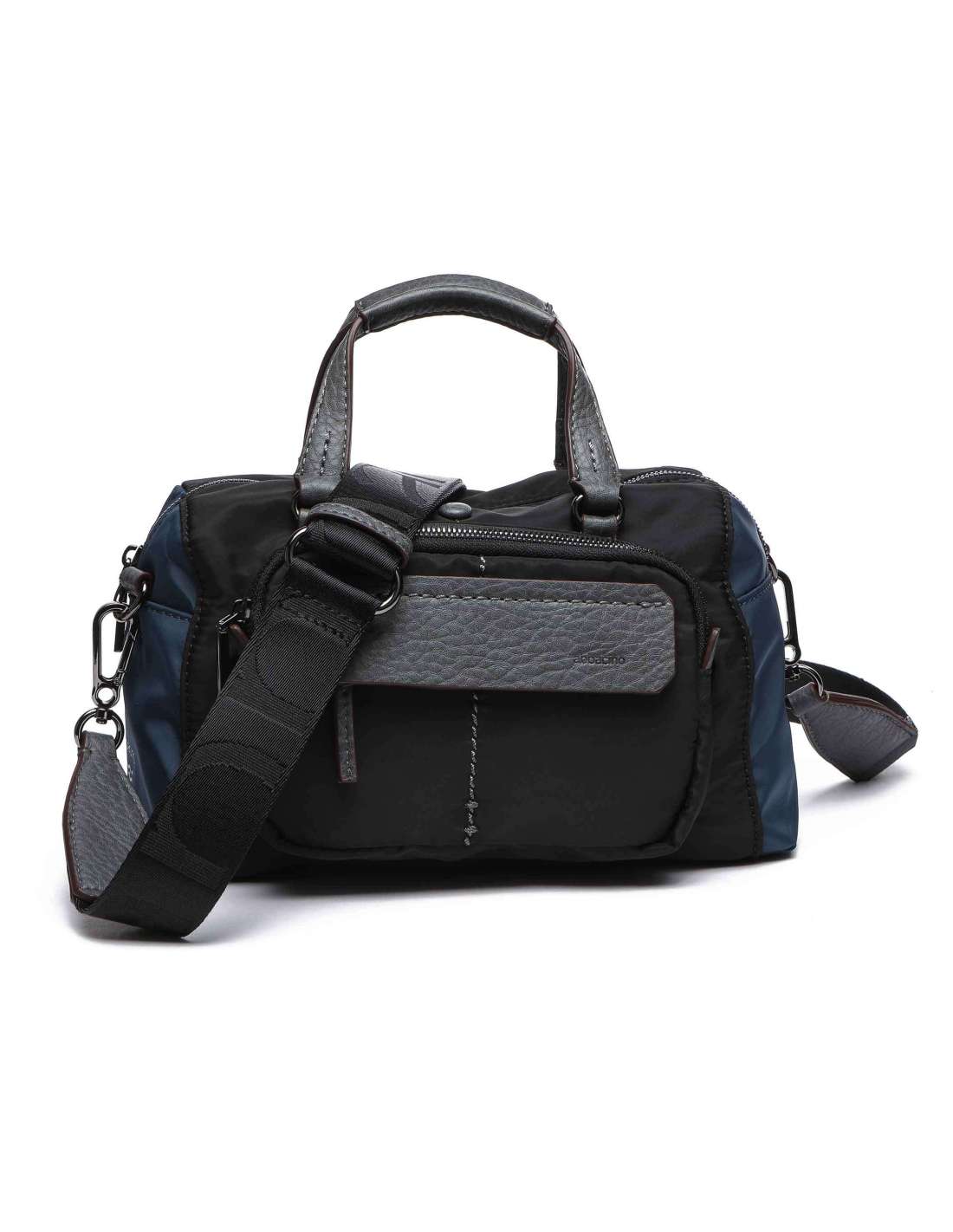 Su interior cuenta con diversos compartimentos organizadores, uno de ellos con cremallera. Bolsillos exteriores, varios de ellos protegidos con cremallera. Forro interior. Cierre superior con cremallera. Combina sus asas de mano con una bandolera, que puede regularse y es de quita y pon.