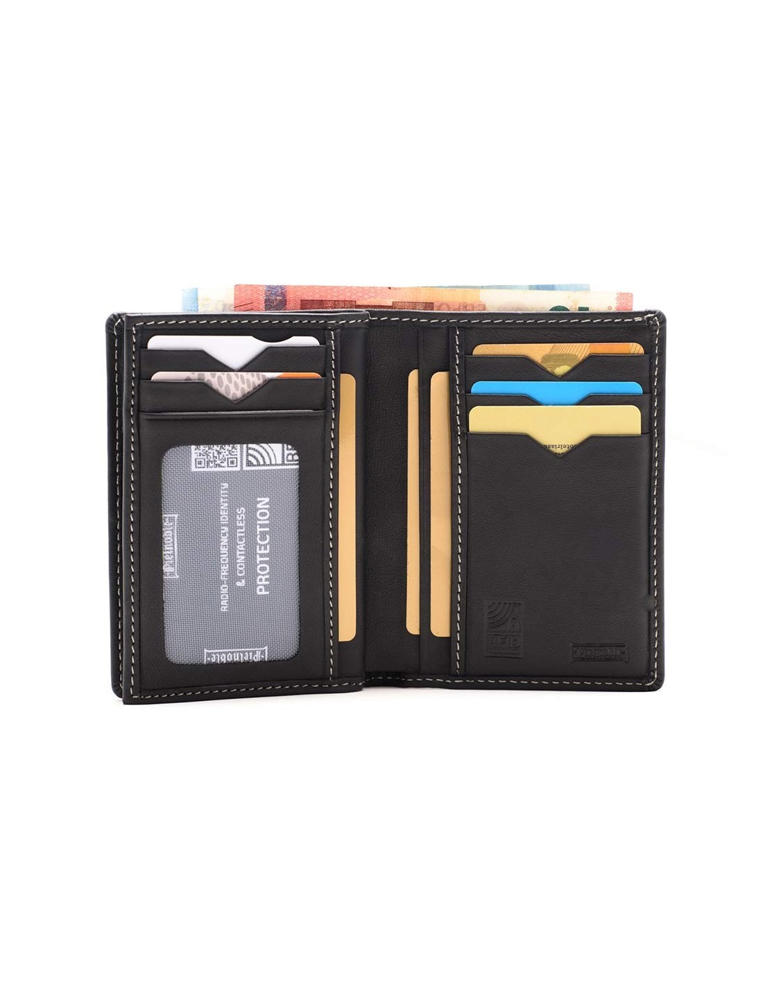 Nueve departamentos para tarjetas, dos con rejilla transparente.
