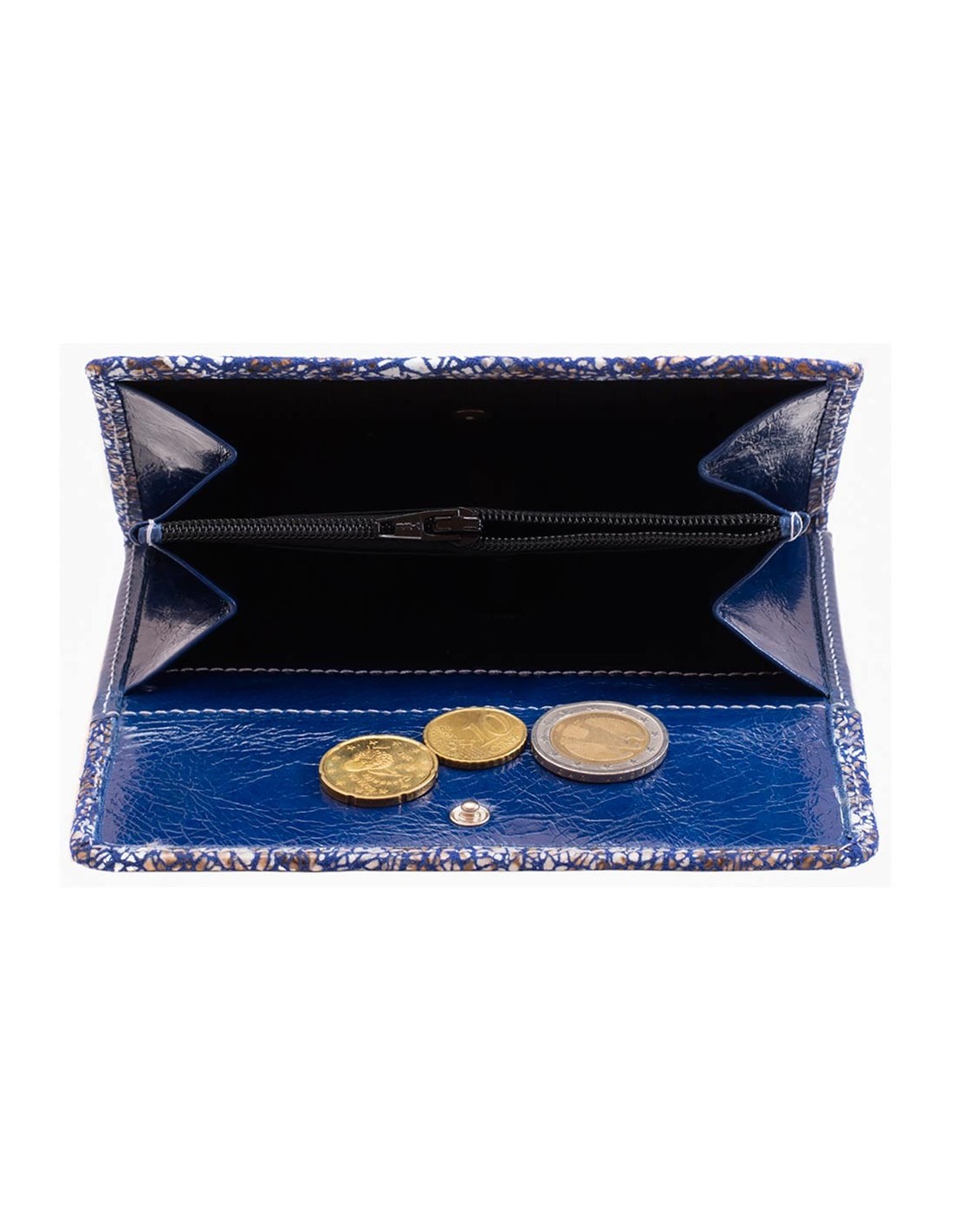 Monedero exterior con cierre de solapa.
