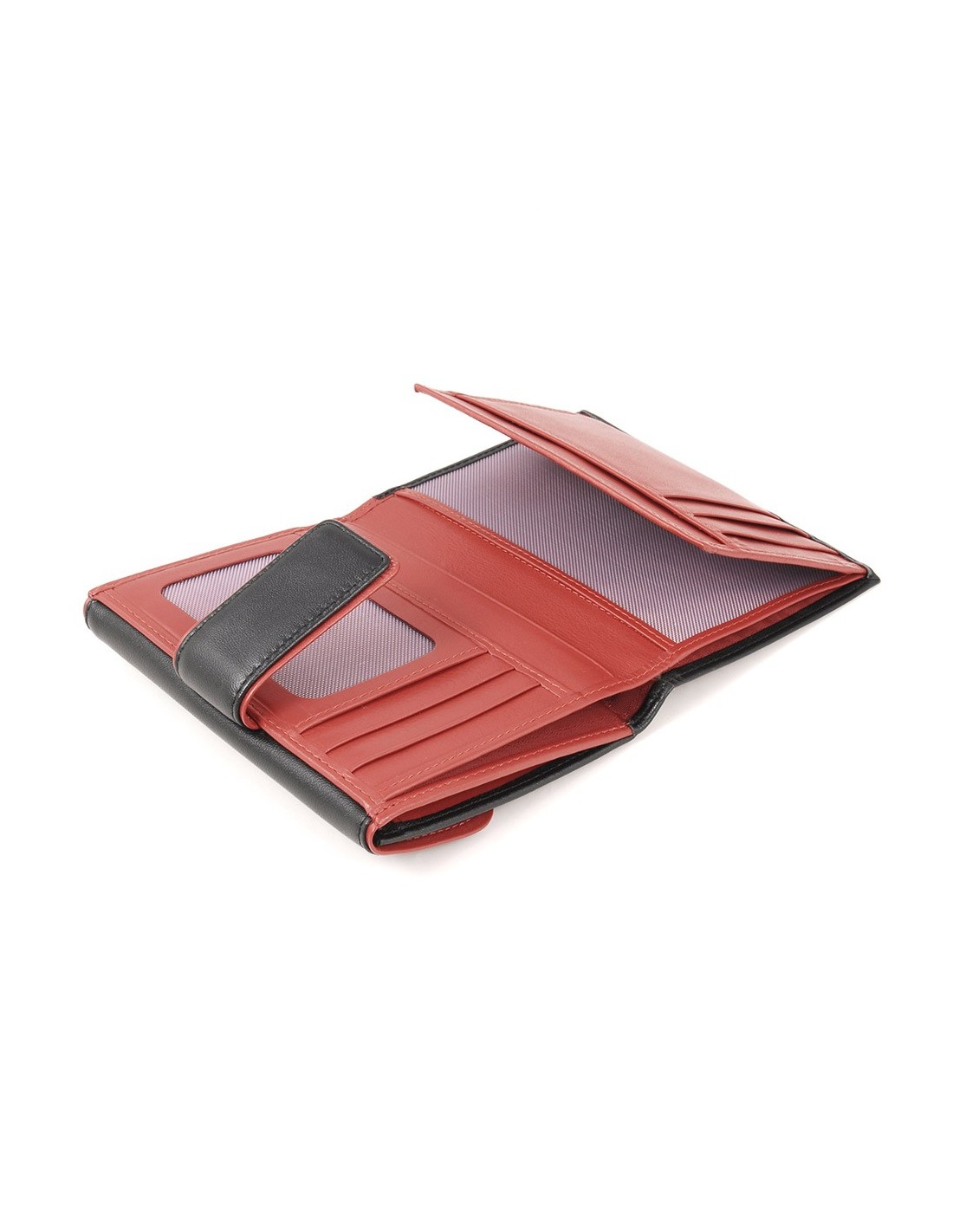 Seis departamentos para tarjetas, uno con rejilla transparente.