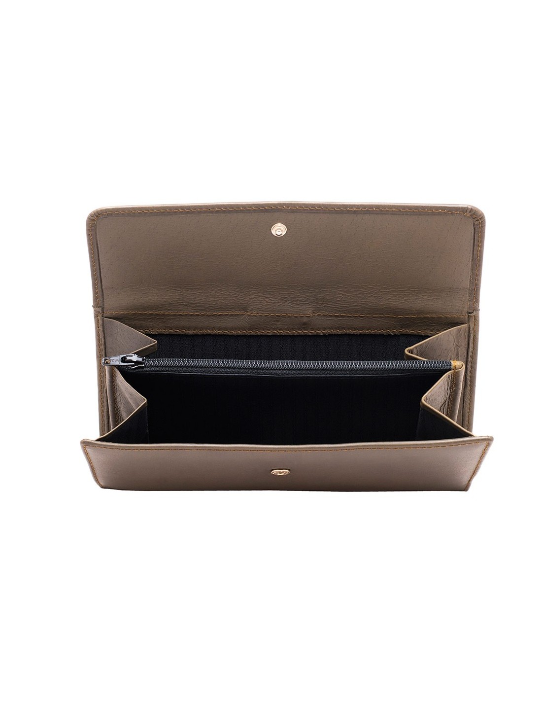 Monedero exterior con dos separaciones y departamento central con cremallera.