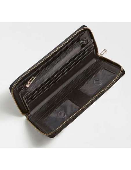 Cierre con cremallera. Piezas metálicas color dorado pálido.