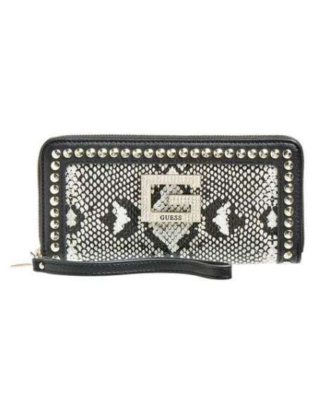 Cierre con cremallera. Piezas metálicas color dorado pálido. Estampado efecto pytón.