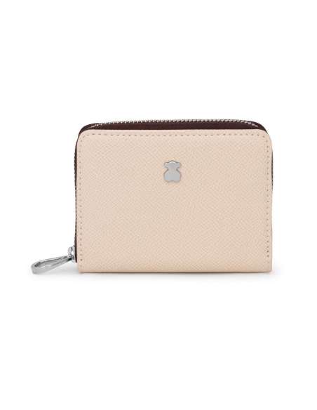 Monedero mediano TOUS de la colección New Dubai de poliuretano con efecto saffiano. Cierre con cremallera y dos compartimentos para monedas.