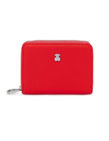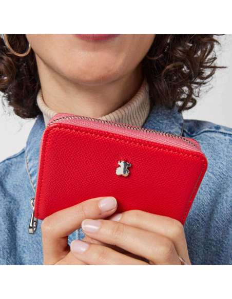 Monedero mediano TOUS de la colección New Dubai de poliuretano con efecto saffiano. Cierre con cremallera y dos compartimentos para monedas.